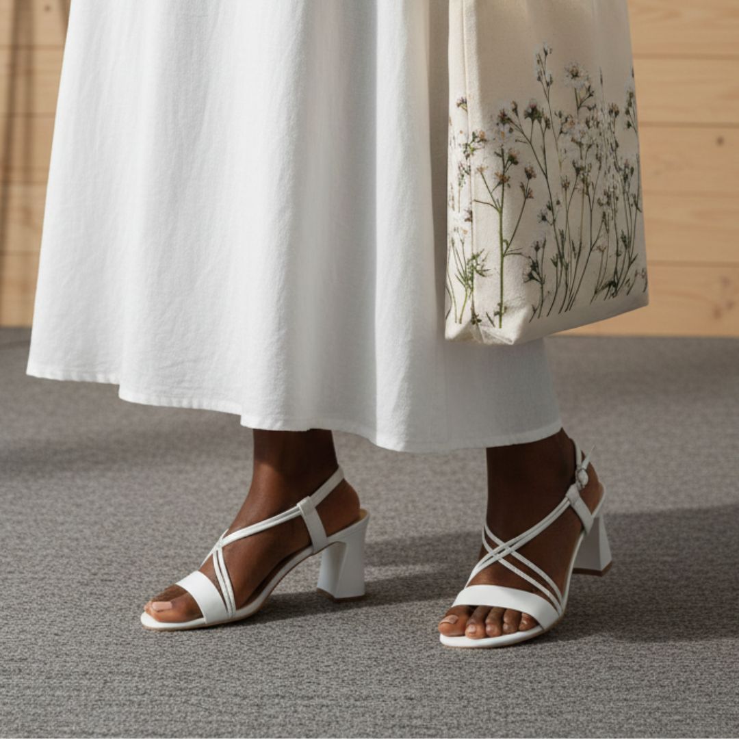 Elevate your brunch look with these white block-heeled sandals. Featuring a chic criss-cross detail at the front, these medium-heeled beauties are perfect for elevated occasions. The open-toe design and back strap with backstrap closure offer both style and security. Crafted from synthetic material, these solid-colored sandals are versatile and easy to pair with various outfits. Step out in confidence and make a lasting impression at your next brunch gathering.