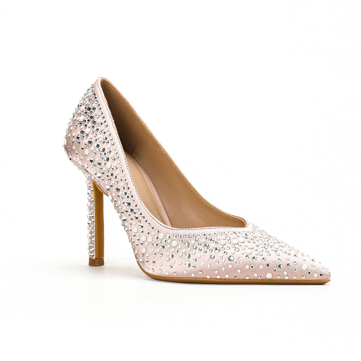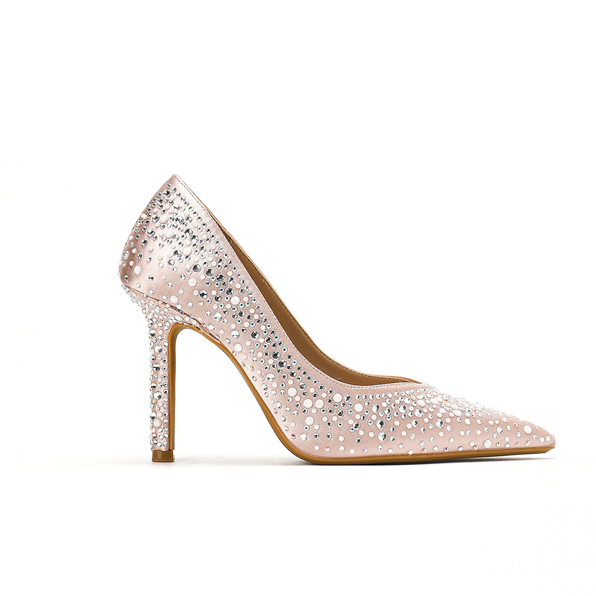 Radiant and refined, this blush crystal-embellished pump is designed to shine on your most special occasions. Featuring a sleek pointed toe and a slender stiletto heel, it’s adorned with delicate crystals that catch the light beautifully. Feminine and glamorous, it’s the perfect finishing touch for bridal and evening looks alike.