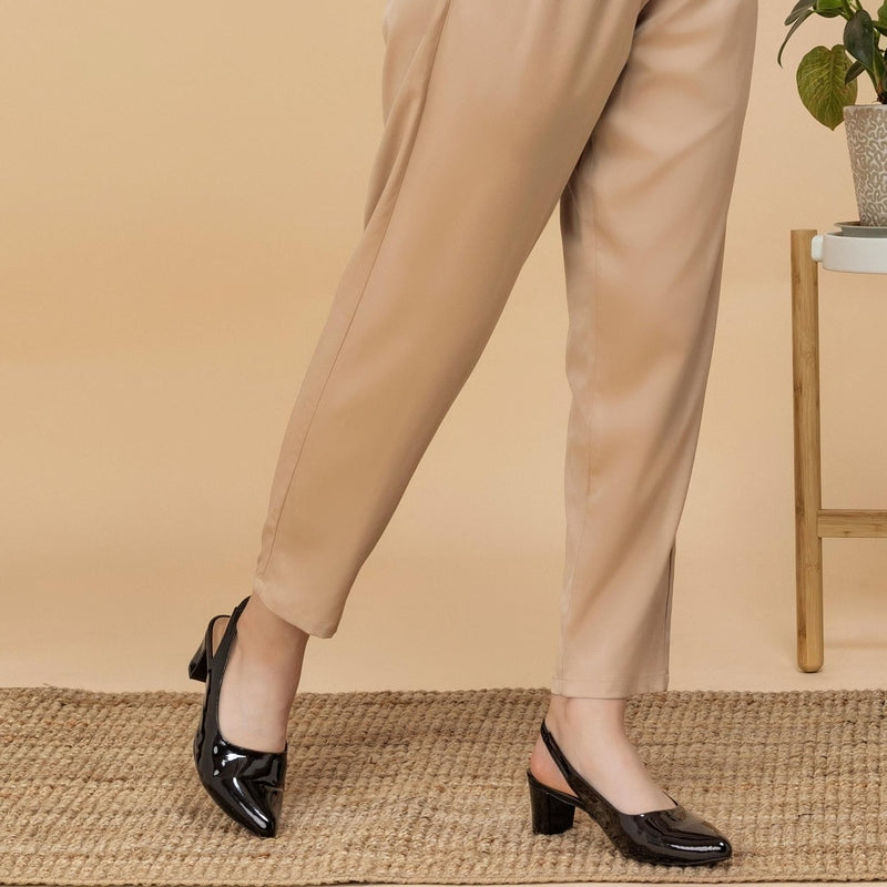 Shiny-Pop Black Slingback Closed-Toe Sandals