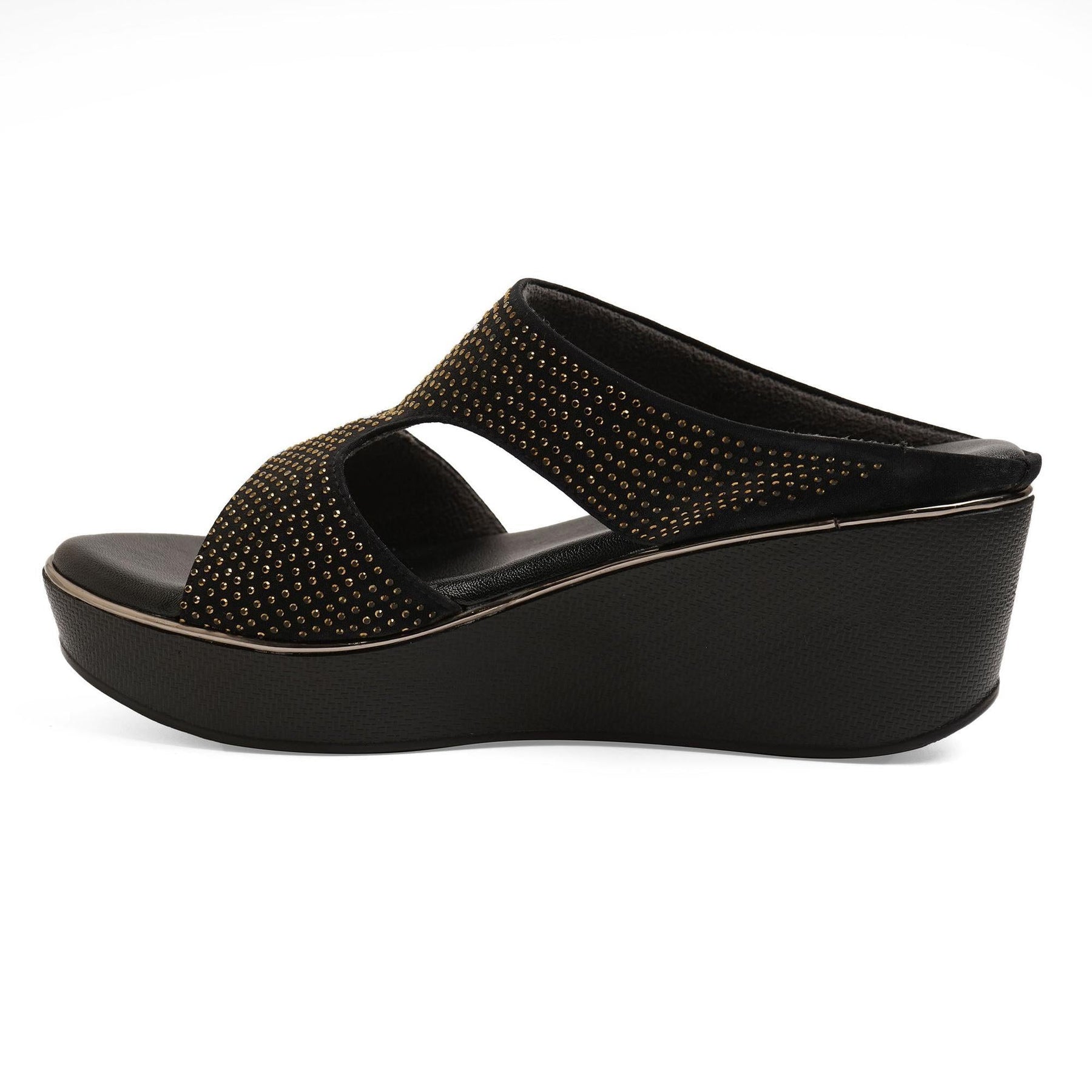 Gemglow Black Wedge Party Sandals