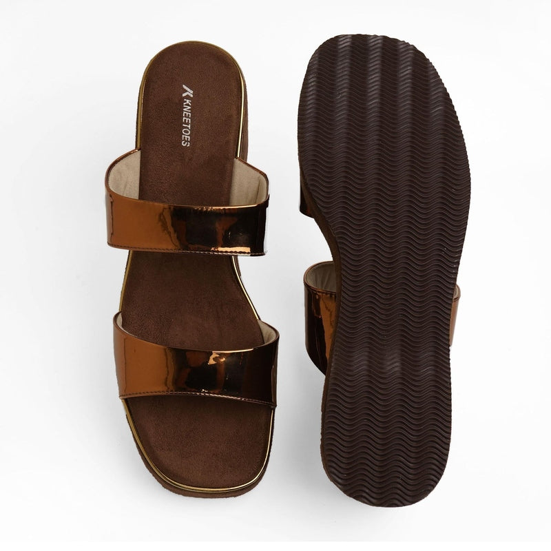Shiny-Pop Bronze Open-Toe Wedge Heels