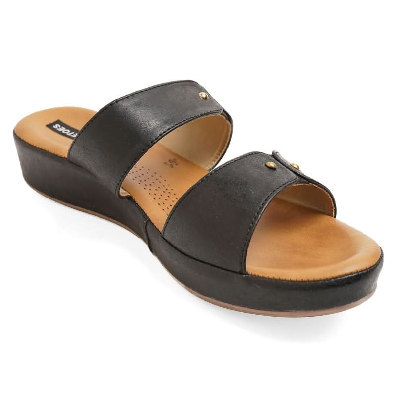 Step into simplicity with these versatile black slip-on heels. The flat design offers ultimate comfort for casual, everyday wear. Made with durable synthetic material, these open-toe heels are perfect for women on the go. The sleek, solid pattern adds a touch of understated elegance to any outfit. Ladies, embrace effortless style with these essential heels that seamlessly blend comfort and minimalist chic.